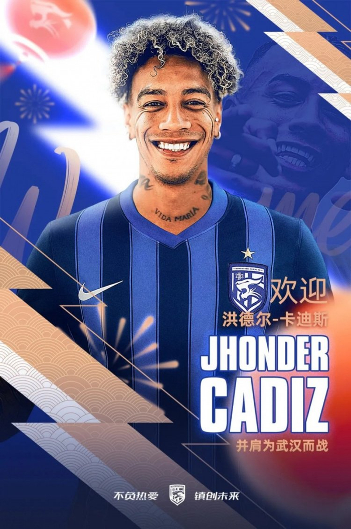 經與墨西哥帕丘卡足球俱樂部及球員本人友好協商,官宣委內瑞拉籍球員洪德爾·卡迪斯(Jhonder Cadiz)轉會加盟武漢三鎮足球俱樂部。洪德