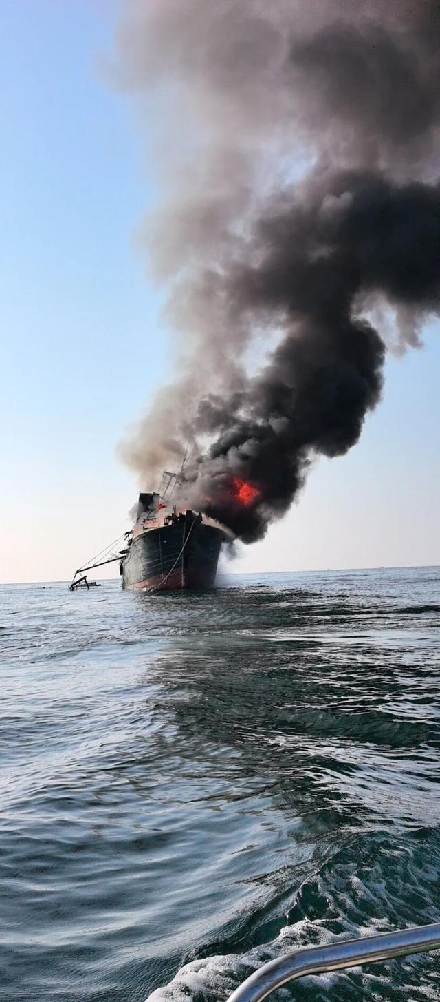 唐孟雄是退伍軍人,那天他正和戰友在廣西北海銀海區僑港鎮附近海域海釣。轉船航行途中,頭沖三人突然聽到一聲巨響,循聲望去,在快艇左側七八公里外,一艘漁船冒出滾滾濃煙,火勢迅速蔓延。“當時我一眼就看出來不對勁,火肯定不小了。”唐孟雄回憶說,來不及多想,三人立刻收起釣竿、掉轉船頭,駕駛租來的快艇全速靠近起火漁船。